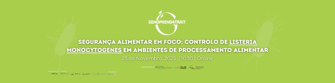 O Colab4Food, a Escola Superior de Biotecnologia da Universidade Católica Portuguesa e o INIAV, IP organizam o webinar “Segurança alimentar em foco: Controlo de Listeria monocytogenes em Ambientes de Processamento Alimentar”, como parte do projeto GENOPHENO4TRAIT.