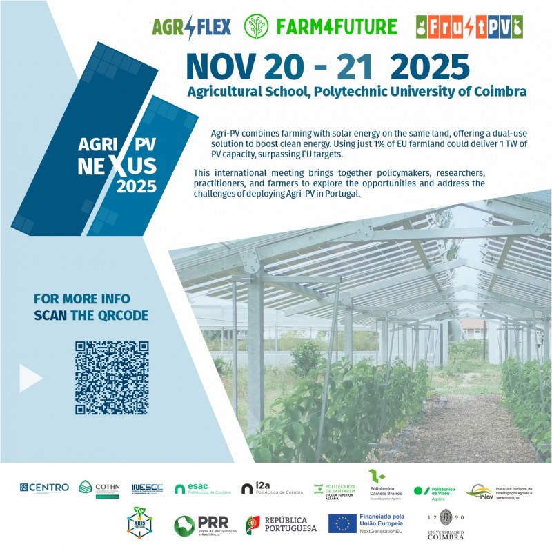 O AGRI-PV Nexus 2025 - International Meeting on Agrivoltaics tem lugar já nos próximos dias 20 e 21 de novembro, na ESAC!