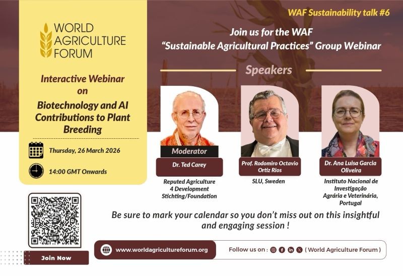 A investigadora Ana Oliveira, do INIAV - Pólo de Elvas, participa, dia 26 de março no webinar “Biotechnology and AI Contributions to Plant Breeding”, promovido pelo World Agriculture Forum.