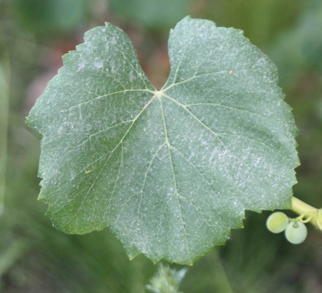 Folha adulta de tamanho médio, orbicular, inteira; limbo verde médio, revoluto, medianamente bolhoso; dentes convexos e curtos; seio peciolar pouco aberto, em V, e seios laterais em V; página inferior com baixa densidade de pelos prostrados.
