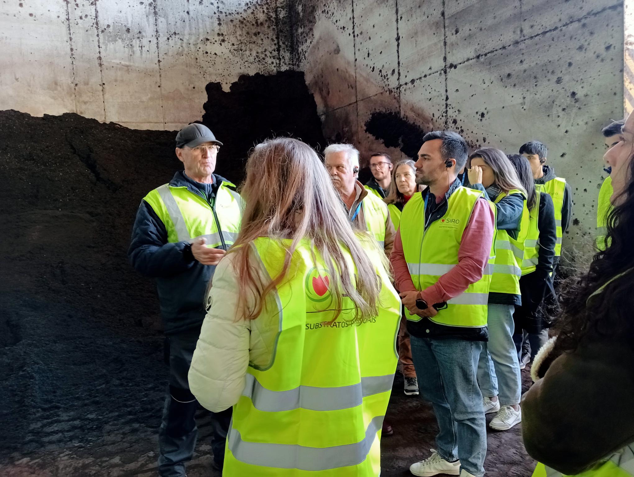 O trabalho técnico desenvolvido no âmbito do projeto foi apresentado aos 33 participantes, incluindo as metodologias de compostagem, resultados preliminares e o contributo para a melhoria da fertilidade do solo e redução de impactos ambientais. Na visita guiada às instalações da Leal & Soares / SIRO, foi possível acompanhar, no terreno, todas as fases do processo de compostagem e transformação de resíduos orgânicos. A visita permitiu uma compreensão direta das tecnologias utilizadas e do papel fundamental que estas desempenham no aproveitamento sustentável dos recursos agropecuários.
