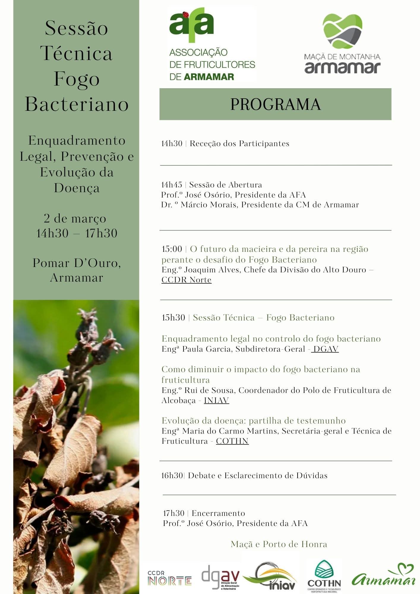 A Associação de Fruticultores de Armamar organiza uma sessão técnica dedicada ao fogo bacteriano, uma doença que continua a representar um grande desafio para a fruticultura.